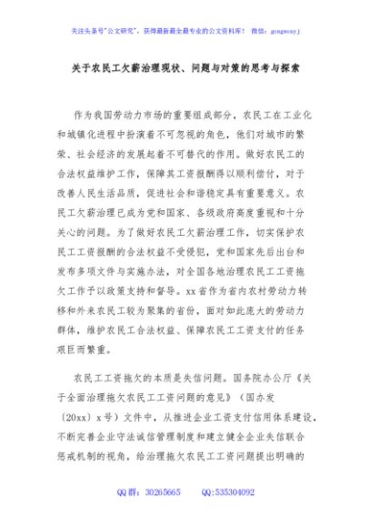 / 关于农民工欠薪治理现状、问题与对策的思考与探索