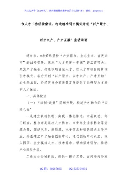 / 市人才工作经验做法:打造精准引才模式开创“以产聚才、以才兴产、产才互融”生动局面