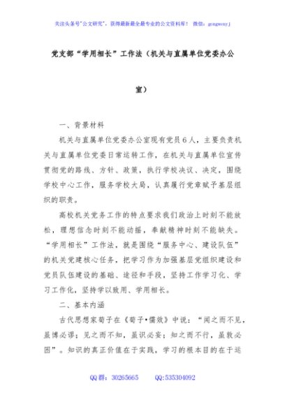 / 党支部“学用相长”工作法(机关与直属单位党委办公室)