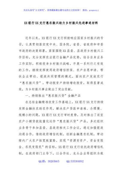 / XX银行XX支行惠农振兴助力乡村振兴先进事迹材料