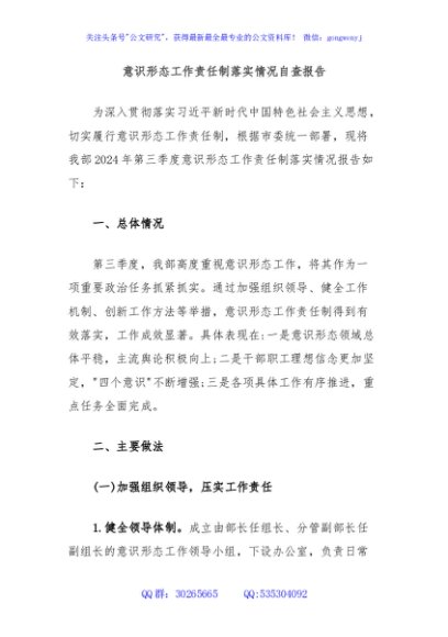 / 意识形态工作责任制落实情况自查报告