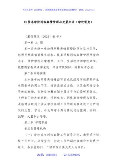 / XX信息学院网络舆情管理与处置办法(学校制度)