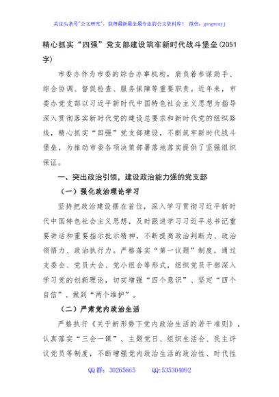 / 精心抓实“四强”党支部建设筑牢新时代战斗堡垒(2051字)