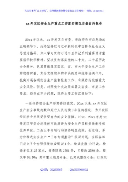 / xx开发区安全生产重点工作落实情况自查自纠报告