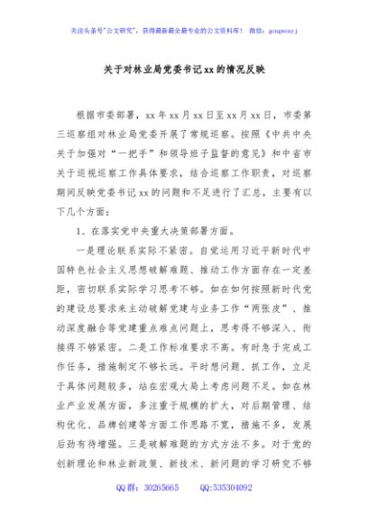 / 关于对林业局党委书记xx的情况反映