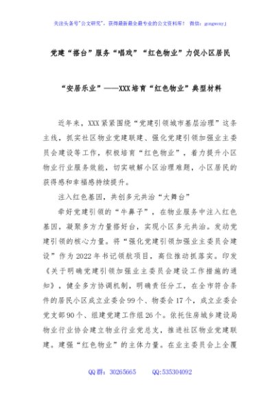 / 党建“搭台”服务“唱戏”“红色物业”力促小区居民“安居乐业”——XXX培育“红色物业”典型材料