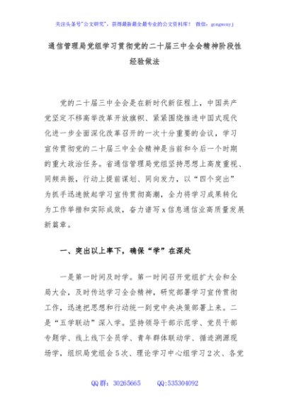 / 通信管理局党组学习贯彻党的二十届三中全会精神阶段性经验做法