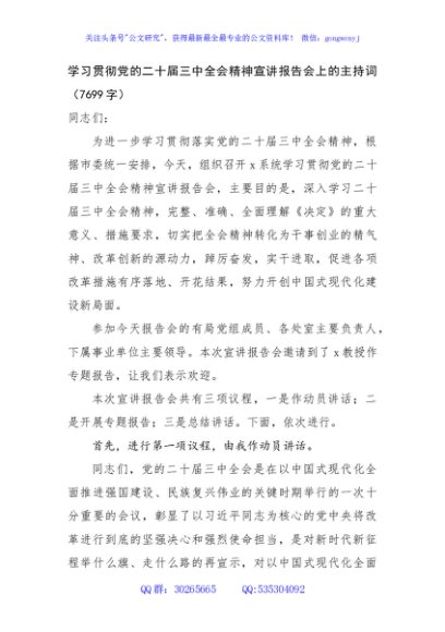 / 学习贯彻党的二十届三中全会精神宣讲报告会上的主持词(7699字)
