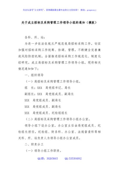 / 关于成立招标及采购管理工作领导小组的通知(模板)