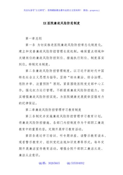 / XX医院廉政风险防范制度