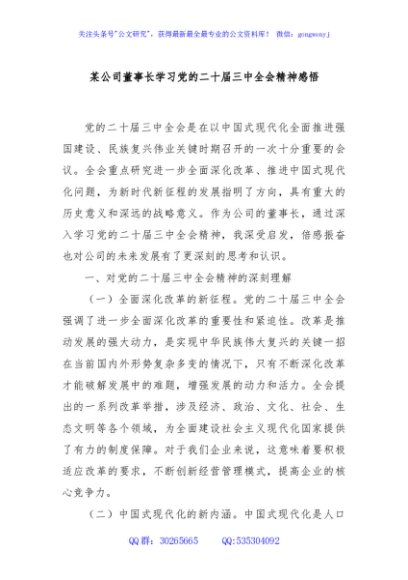 / 某公司董事长学习党的二十届三中全会精神感悟