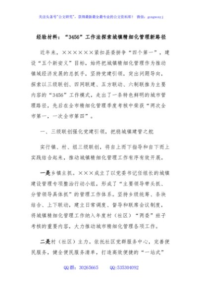 / 经验材料:“3456”工作法探索城镇精细化管理新路径