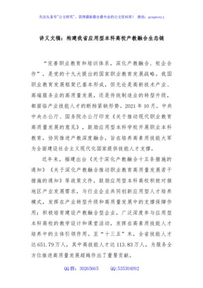 讲义文稿:构建我省应用型本科高校产教融合生态链