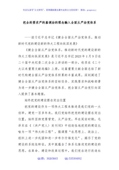 / 把全的要求严的基调治的理念融入全面从严治党体系