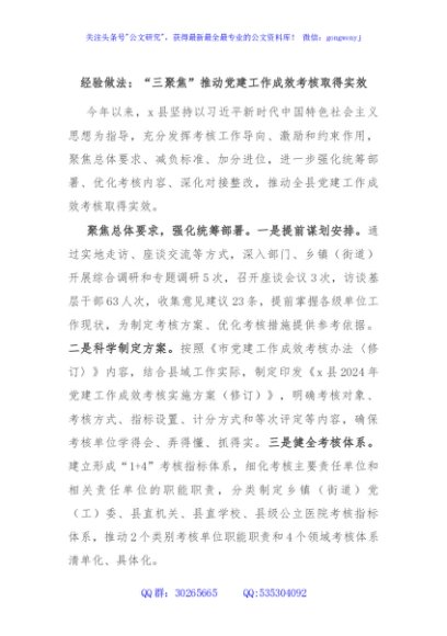 / 经验做法:“三聚焦”推动党建工作成效考核取得实效