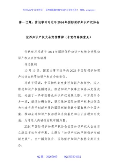 / 第一议题:传达学习习近平2024年国际保护知识产权协会世界知识产权大会贺信精神(含贯彻落实意见)