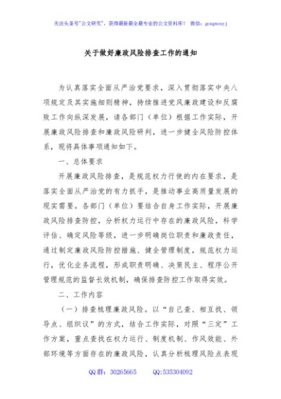 / 关于做好廉政风险排查工作的通知