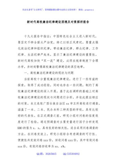 / 新时代高校廉洁纪律建设困境及对策探析报告