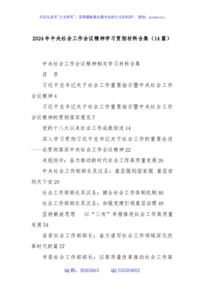 / (14篇)2024年中央社会工作会议精神学习贯彻材料合集