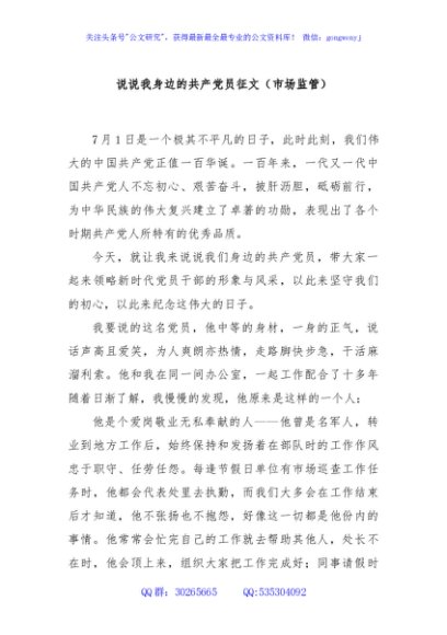 / 说说我身边的共产党员征文(市场监管)