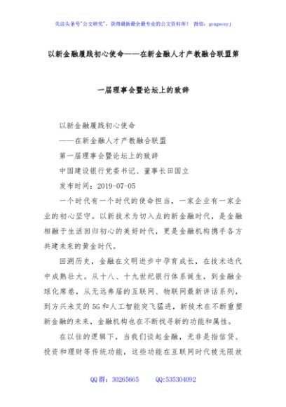 / 以新金融履践初心使命——在新金融人才产教融合联盟第一届理事会暨论坛上的致辞