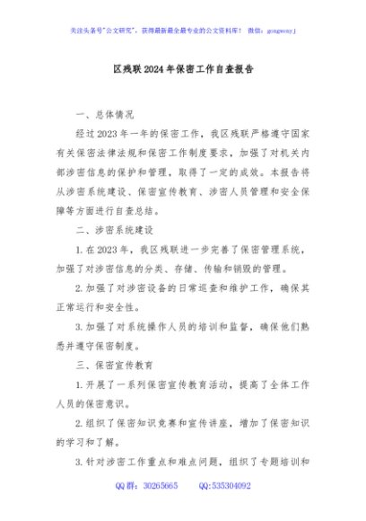 / 区残联2024年保密工作自查报告