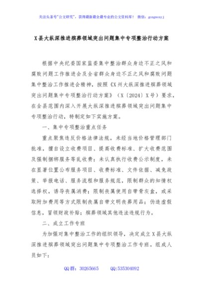 / X县大纵深推进殡葬领域突出问题集中专项整治行动方案