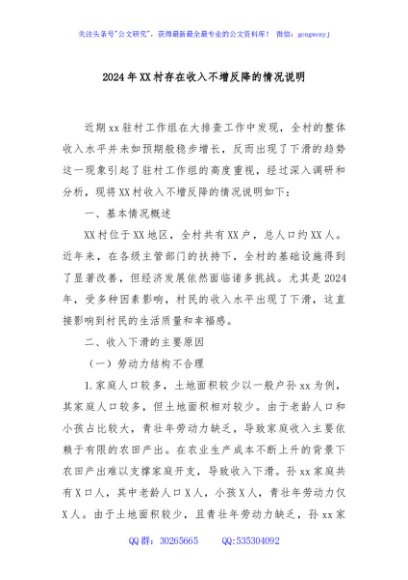 / 2024年XX村存在收入不增反降的情况说明