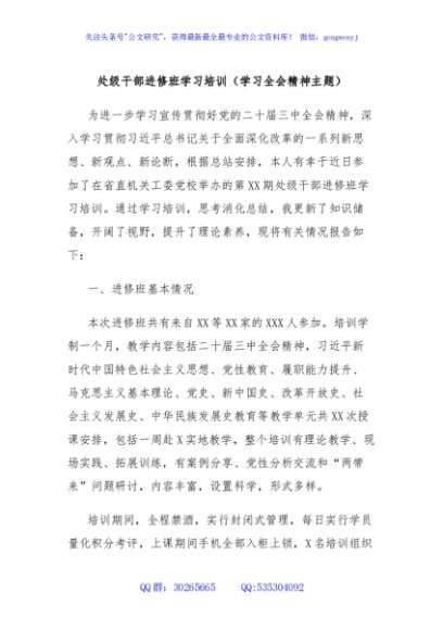 / 处级干部进修班学习培训(学习全会精神主题)