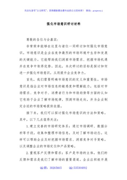 强化市场意识研讨材料