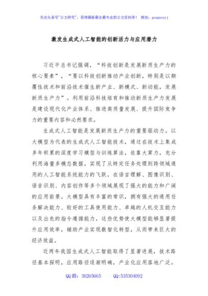 / 激发生成式人工智能的创新活力与应用潜力