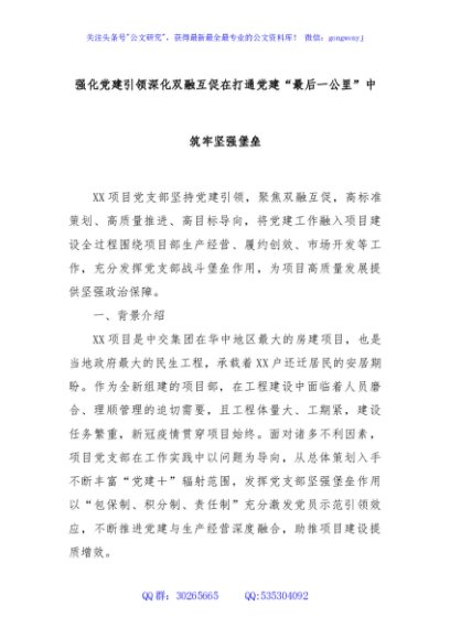 / 强化党建引领深化双融互促在打通党建“最后一公里”中筑牢坚强堡垒