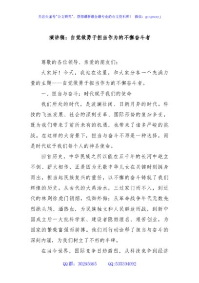 / 演讲稿:自觉做勇于担当作为的不懈奋斗者