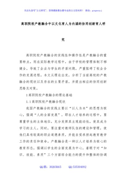 / 高职院校产教融合中以文化育人为内涵的协同创新育人研究