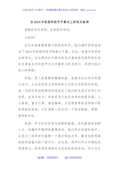 / 在2024年校园科技节开幕式上的校长致辞