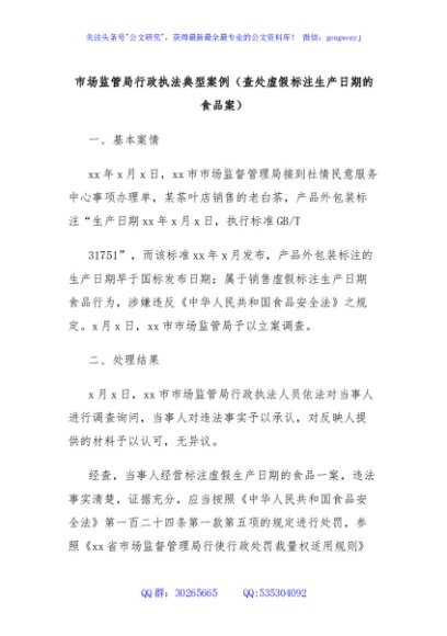 / 市场监管局行政执法典型案例(查处虚假标注生产日期的食品案)
