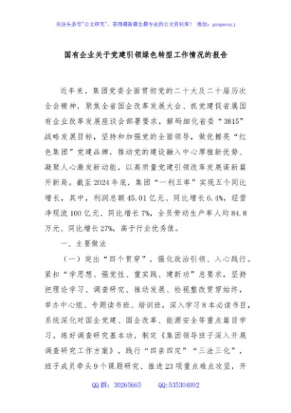 / 国有企业关于党建引领绿色转型工作情况的报告
