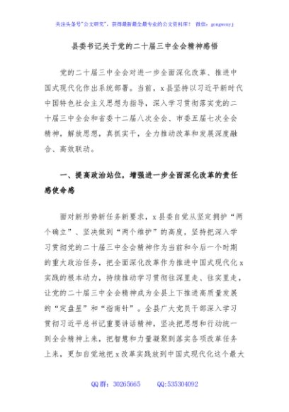 / 县委书记关于党的二十届三中全会精神感悟