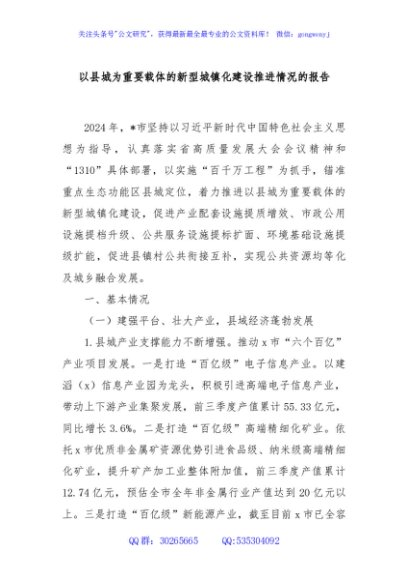 / 以县城为重要载体的新型城镇化建设推进情况的报告