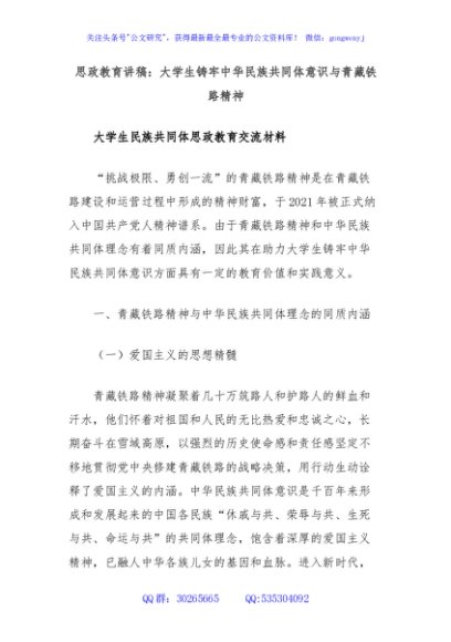 / 思政教育讲稿:大学生铸牢中华民族共同体意识与青藏铁路精神