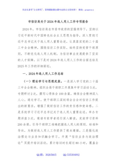 / 市信访局关于2024年选人用人工作专项报告