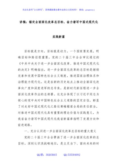 / 讲稿:锚定全面深化改革总目标,奋力谱写中国式现代化实践新篇