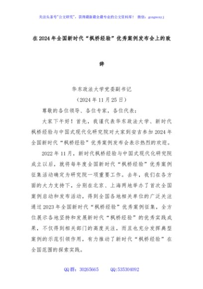 / 在2024年全国新时代“枫桥经验”优秀案例发布会上的致辞