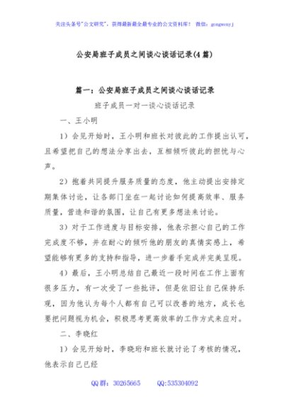 / (4篇)公安局班子成员之间谈心谈话记录