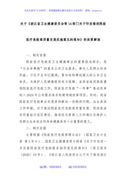 / 关于《浙江省卫生健康委员会等14部门关于印发推进院前医疗急救高质量发展实施意见的通知》的政策解读