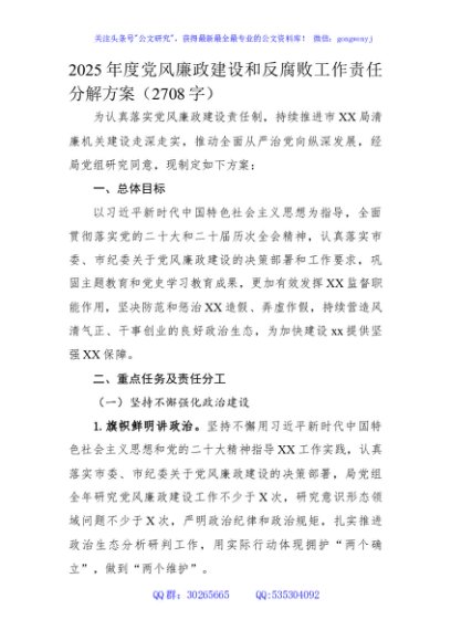 / 2025年度党风廉政建设和反腐败工作责任分解方案(2708字)