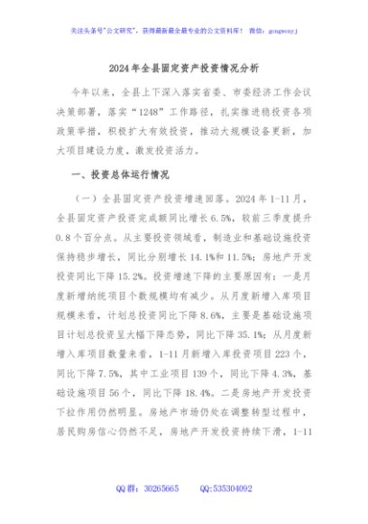 / 2024年全县固定资产投资情况分析