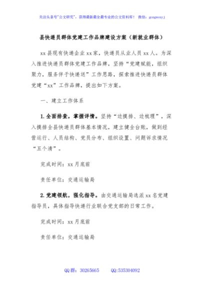 / 县快递员群体党建工作品牌建设方案(新就业群体)