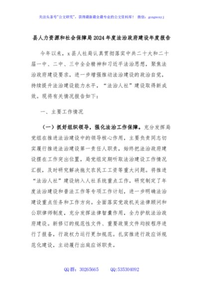 / 县人力资源和社会保障局2024年度法治政府建设年度报告
