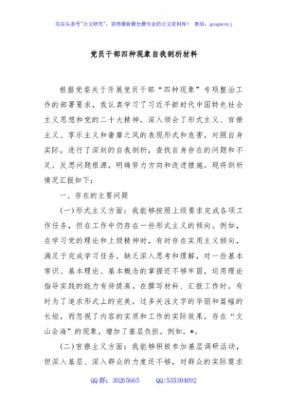 / 党员干部四种现象自我剖析材料
